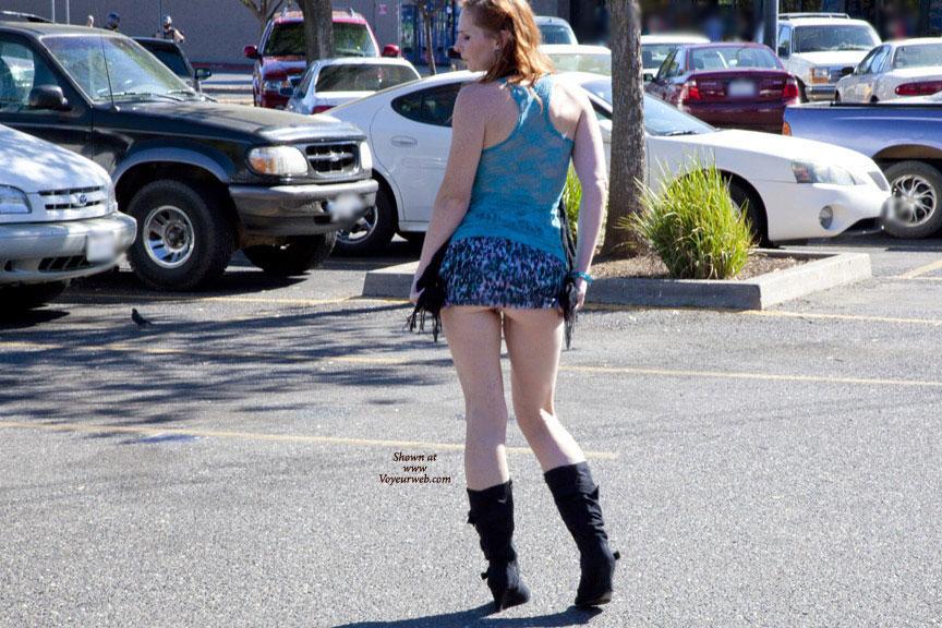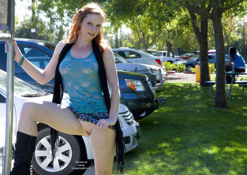 Public Exhibitionist Public Place Shaved Wife/Wives Flashing Redhead