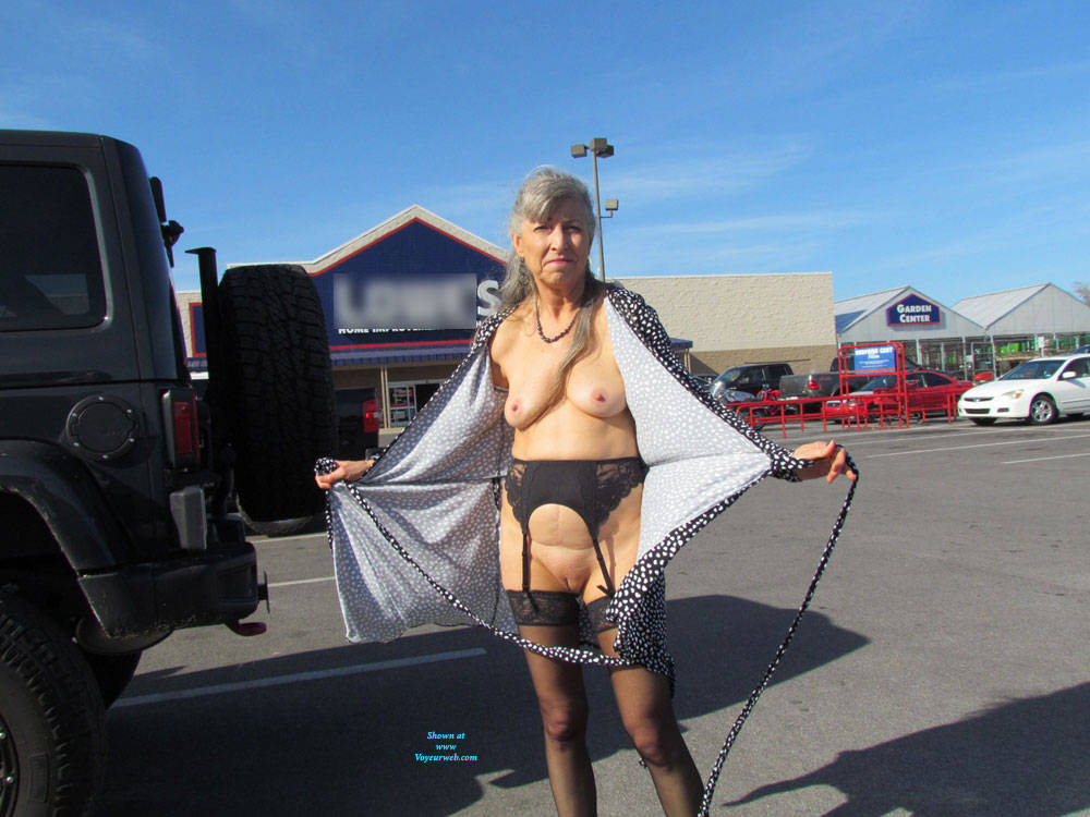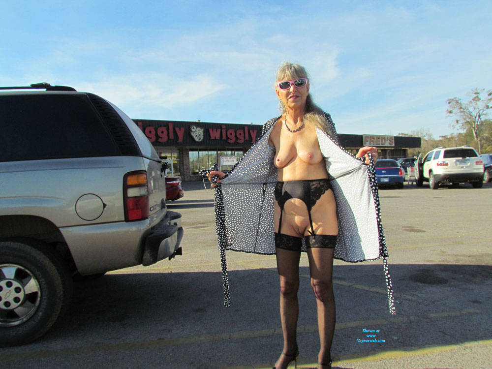 Drove my wife around town and stopped at different places to open her dress and show what she was wearing underneath.