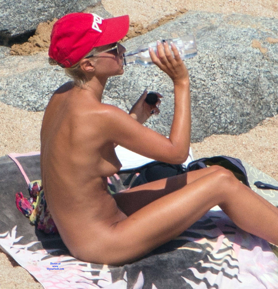 There was not too many people that day at the beach. So the young nordic was encouraged to take off her bikini.