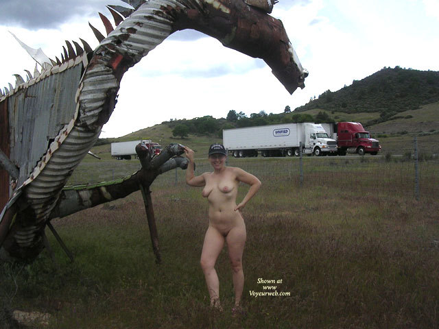 I just got back from a day trip in my car. To start the day, I took off everything but my panties and opened my sunroof to enjoy the sun and get in the mood for taking pictures for you. The truckers around me noticed right away and started pulling up next to my window for a better look. It was kind of scary at first, but I tried to relax and took off my panties to give them a real show. It was fun and they all seemed to really enjoy it! I rode around completely naked the rest of the day. These photos are of me stopping along the way. I hope you like....Kylie