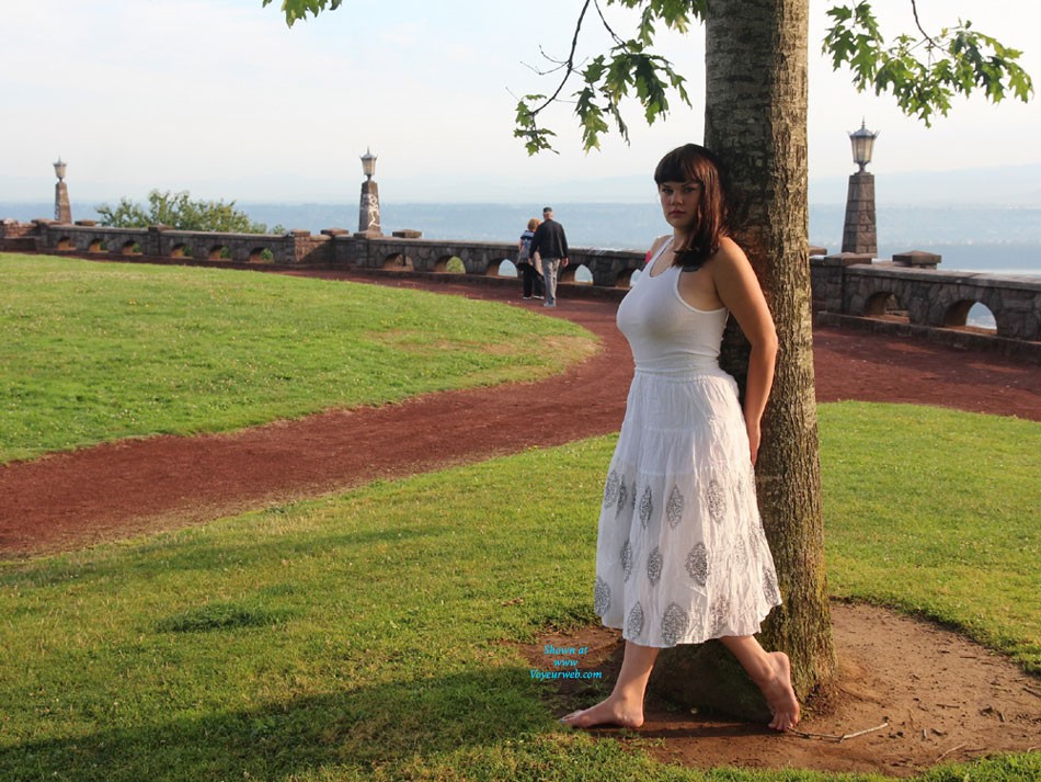 Sometimes... getting caught while shooting a Nude In Public can be a GOOD thing, such as when photographing someone else in a city park and getting caught by someone like Lola, who asks if she can "play too"...